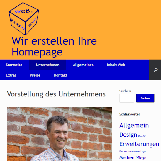 Sie stellen die Inhalte bereit, vor allem Texte, aber bei Bedarf auch Logo und Bilder. Wir erstellen eine Homepage komplett nach Ihren Wünschen oder wählen ein vorgebenes Design (Thema) aus und pflegen Ihre Inhalte ein, erstellen auch Logo und Bilder. Natürlich übernehmen wir auf Wunsch auch die Pflege Ihrer fertigen / vorhandenen Hompage (Öffnungszeiten, Termine, Angebote usw.) in regelmäßigen Abständen per Wartungsvertrag oder bei Bedarf. Alternativ bekommen Sie von uns eine Einweisung für die Pflege der Homepage und führen diese dann selbst durch. |